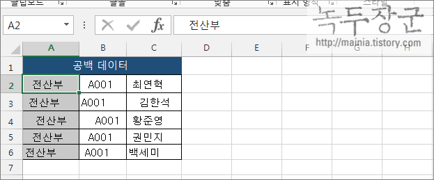 ▼ 이렇게 공백이 제거된 데이터만 남기고 이전에 데이터는 삭제합니다. 이 방법보다 간단한 것은 VBA 로 매크로를 만들어서 제거하면 됩니다. 이것은 VBA 아티클에서 다루도록 하겠습니다.