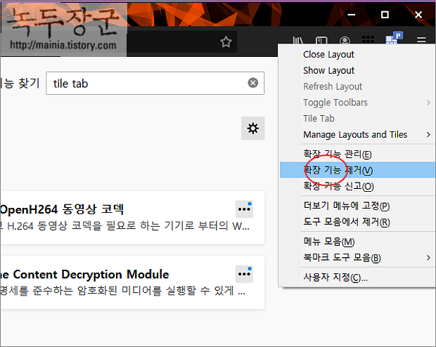 ▼ 또 다른 방법은 확장 기능 화면에서 제거하는 것입니다. 확장 기능 관리 화면으로 가서 삭제할 프로그램을 찾습니다.