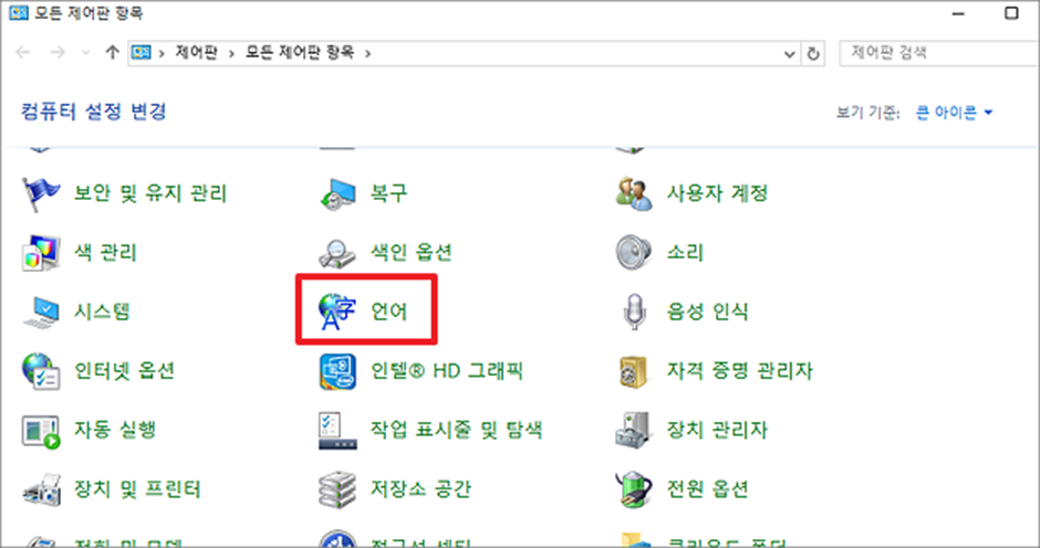 ▼ 제어판에서 다시 [언어]를 선택합니다.