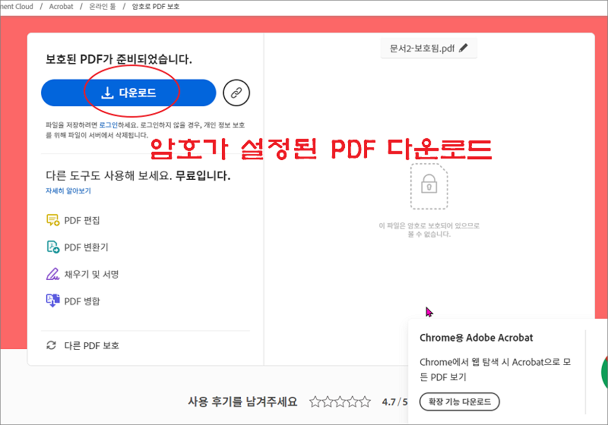 ▼ 암호 설정이 끝나면 업데이트된 PDF 파일을 다운받을 수 있는 버튼이 왼쪽 상단에 나타납니다.