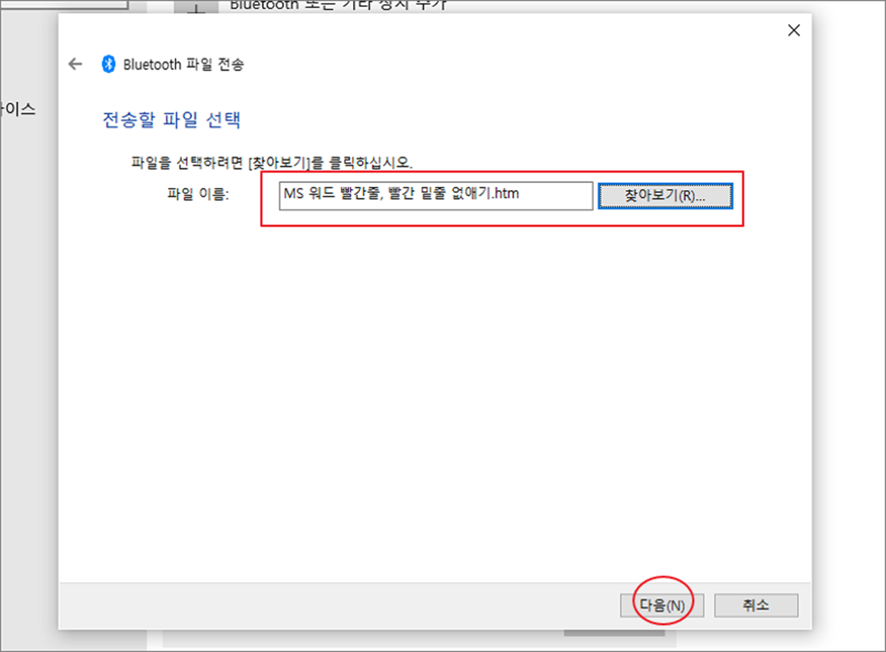 ▼ 다음 페이지에서 찾아보기를 통해 전송할 파일을 선택합니다. 파일 선택이 끝났다면 다음을 눌러 전송을 시도합니다. 노트북에서 파일을 전송하게 되면 바로 시작되는 것이 아니라 스마트폰에서 파일 전송을 수락해야 합니다. 다시 스마트폰으로 가 보겠습니다.