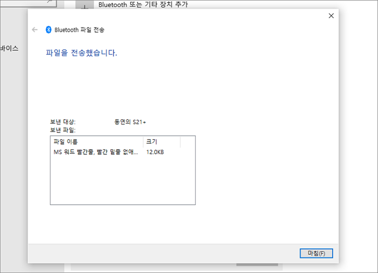 ▼ 노트북에서도 정상적으로 파일을 전송했다고 화면에 표시하고 있습니다.