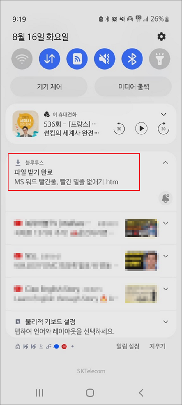 스마트폰에는 기본적으로 블루투스 시스템이 내장되어 있습니다. 블루투스는 무선 시스템으로 휴대폰, 노트북, 이어폰 등 휴대기기를 서로 연결해서 정보를 교환할 수 있는 기술 표준입니다. 만약 노트북에 연결할 USB 연결선이 없는 경우 파일을 전송하는 여러 방법 중 하나로 블루투스를 이용하기도 합니다. 노트북에 스마트폰을 블루투스로 연결하고 파일을 전송해 보겠습니다.