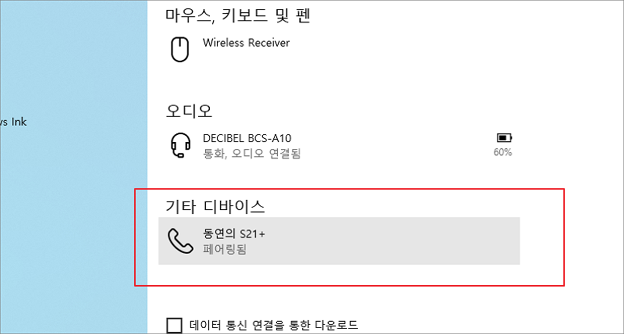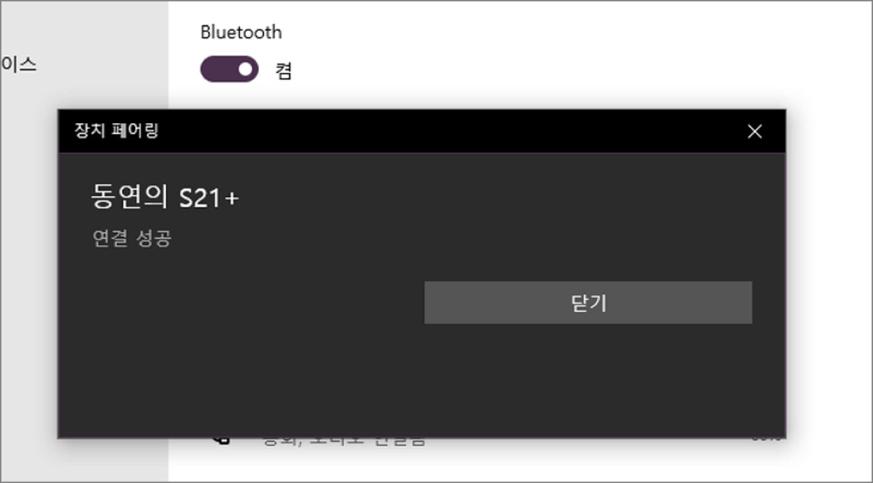 ▼ 연결된 블루투스 목록에서 스마트폰을 선택하고 다음 버튼을 클릭합니다.