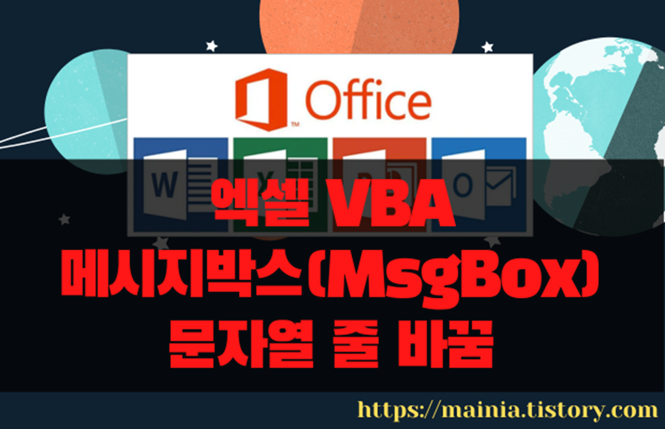 | Sub MsgboxCarriageReturn() Msgbox "첫 번째 줄 표현하기 " & Chr(13) & chr(10) & "두 번째 줄 표현하기" Msgbox "첫 번째 줄 표현하기 " & vbCrLf & "두 번째 줄 표현하기" End Sub |
