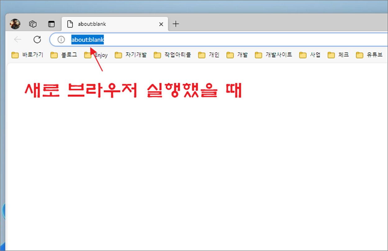 ▼ 다음은 결과를 확인하기 위해 브라우저를 종료하고 다시 시작합니다. 그럼 아래 그림처럼 첫 페이지가 아무것도 없는 빈 페이지로 나타날 겁니다.