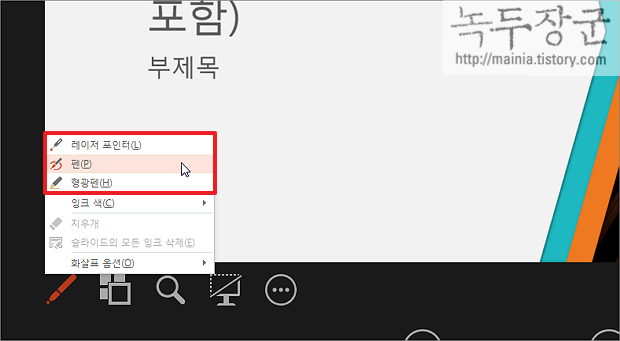 ▼ 아래 그림처럼 프레젠테이션 할 때 펜을 이용해서 설명을 하시면 됩니다.