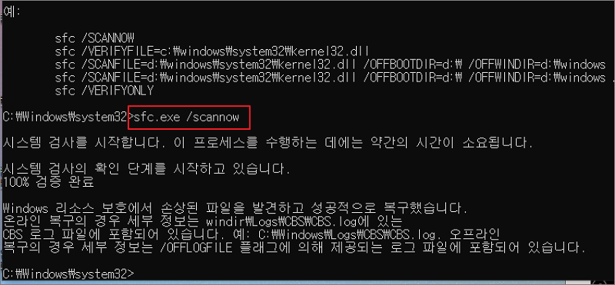 | ◎ sfc.exe 이용해서 시스템 검사하기 |
