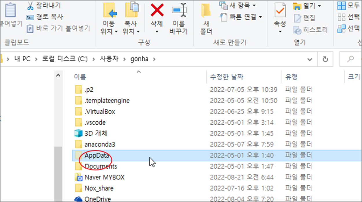 ▼ 엣지 최신 버전으로 업데이트 하는 과정에서 충돌로 인해 문제가 발생할 수 있습니다. 이런 경우 엣지 브라우저를 초기화해서 문제를 해결할 수 있습니다. 방법은 엣지의 사용 기록이 있는 폴더를 삭제하는 것입니다. C 드라이버 > 사용자 > [사용자계정] > AppData 폴더로 이동합니다. AppData 폴더가 안보일 경우 탐색기 숨김 항목 옵션을 체크합니다.
