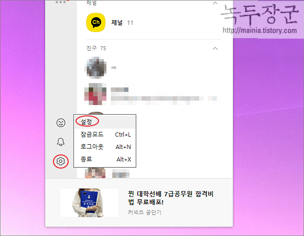 ▼ PC 에 저장된 파일의 위치를 찾아보겠습니다. 그리고 자신이 원하는 폴더 위치로 변경하는 방법도 알아봅니다. 화면 왼쪽 하단에 톱니 모양의 아이콘을 클릭합니다. 화면에 나타난 메뉴 목록에서 설정을 선택합니다.