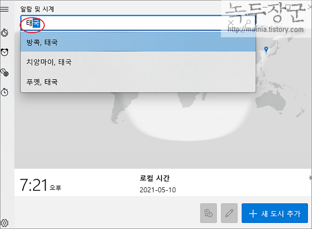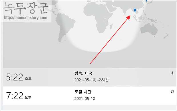 ▼ 그림처럼 추가한 나라의 시간과 날짜가 지도와 목록에 추가가 됩니다.