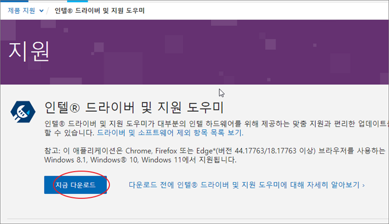 ▼ 드라이버 업데이트 유틸리티를 다운받기 위해 [지금 다운로드] 버튼을 클릭합니다.