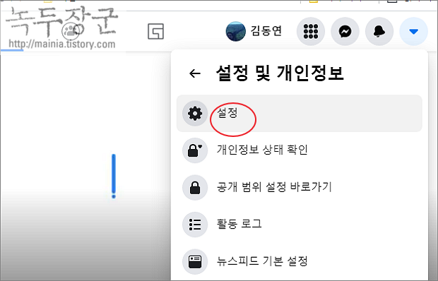▼ 설정 및 개인 정보 메뉴 목록에서 제일 상단에 설정 메뉴를 선택합니다.