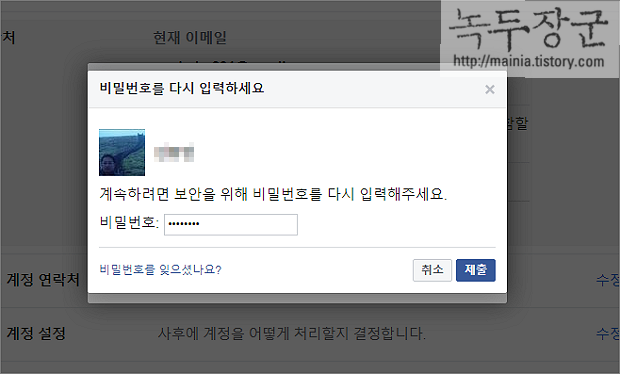 ▼ 다음은 자신의 계정임을 확인하기 위해 한 번 더 비밀번호를 입력해야 합니다. 보안을 위한 절차입니다.