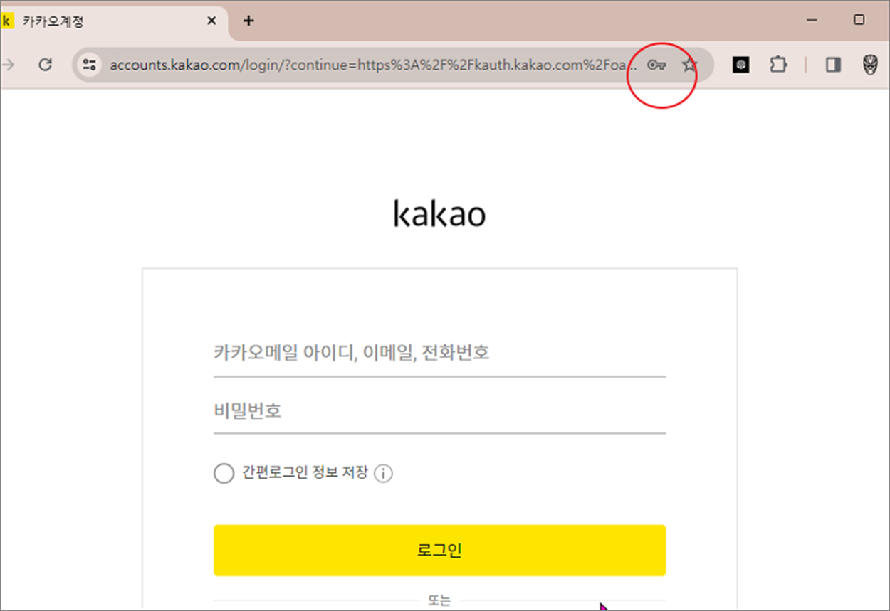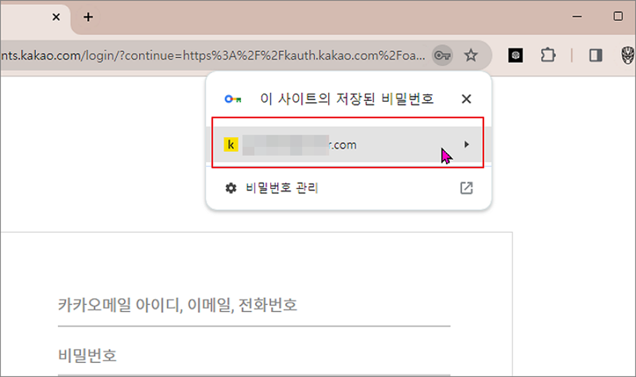 ▼ 주소 입력창 끝에 열쇠 모양의 아이콘이 뜨는데 클릭하면 비밀번호 저장 관리 창이 나타납니다. 해당 사이트 주소 옆에 화살표를 눌러 보세요.