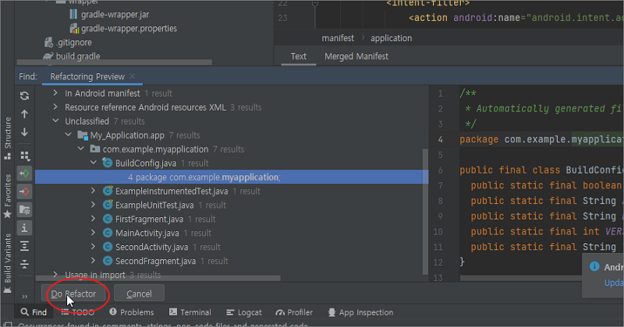 ▼ 계속 패키지명 변경을 진행하고 싶다면 Refactoring Preview 창 하단에 Do Refactor 을 클릭합니다.