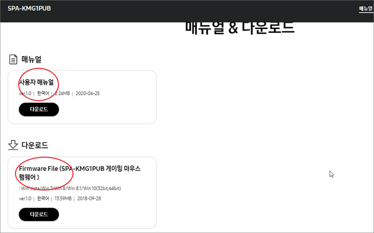 ▼ 검색 결과에 매뉴얼이나 마우스 드라이버를 다운받을 수 있는 링크가 나타날 겁니다.
