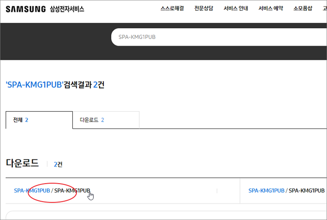 ▼ 매뉴얼 다운로드 화면 중앙 검색란에 제품명을 입력합니다.