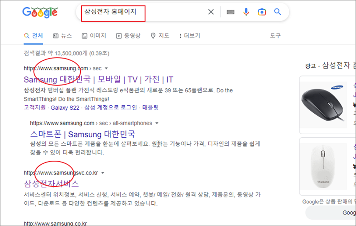 ▼ 드라이버를 다운받을 수 있는 사이트로 두 군데를 소개하겠습니다. 구글 검색창에서 삼성전자 홈페이지로 검색합니다. 검색 결과 목록 상단에는 2개의 삼성전자와 관련한 사이트가 뜹니다. 먼저 첫 번째 삼성전자 가전 홈페이지로 들어갑니다.