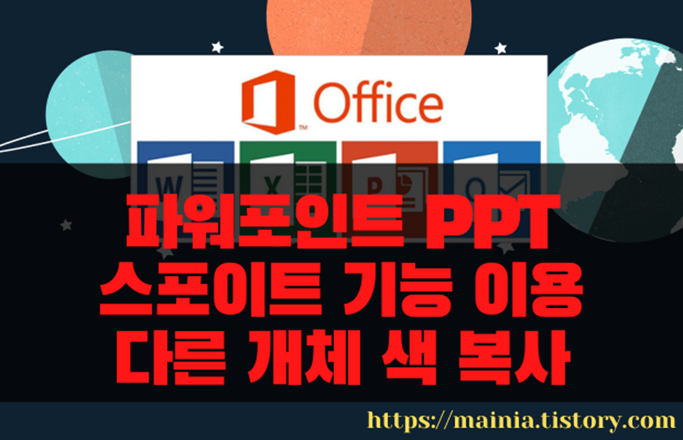 도형과 관련된 작업 중에 마음에 드는 색상으로 동일하게 배경색을 입히고 싶을 때 어떤 방법을 사용하시나요? 적용하고 싶은 색상과 비슷한 것들을 찾으시나요? 파워포인트에 스포이트 기능을 이용하시면 쉽게 참고 하고 싶은 색상 정보를 가져와 적용할 수 있습니다. 과학 시간에 한번쯤 사용해 본 적이 있는 스포이드 모양의 아이콘을 사용하게 됩니다.