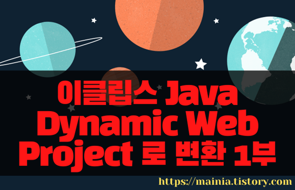 어떻게 하면 기존에 Java Application 으로 만든 Project 를 Dynamic Web Project 로 변경할 수 있을까요? 이클립스를 이용하면 Web Application 을 구동하기 위해 구조를 직접 만들지 않아도 됩니다. 오늘은 이전 Java Project 를 Apache Tomcat Server 와 연동해서 JSP 를 구동할 수 있는 Dynamic Web Project 로 만들어 보겠습니다. 이 방법은 Java Application 이 아니더라도 상관없습니다. Dynamic Web Project 로 만들고 싶은 어떤 프로젝트라도 가능하기 때문에 자주 사용하고 있는 방법입니다.