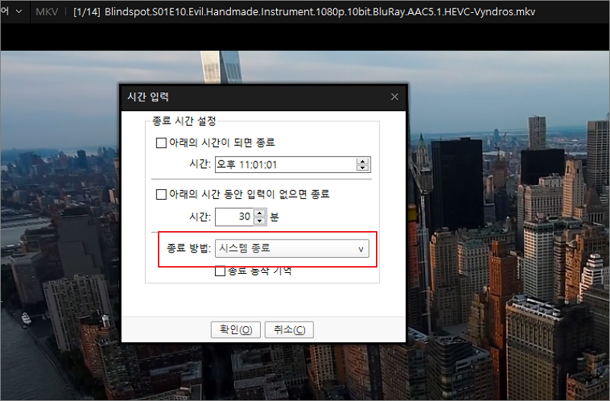 | ◎ 동영상 플레이어로 컴퓨터 종료 설정 |