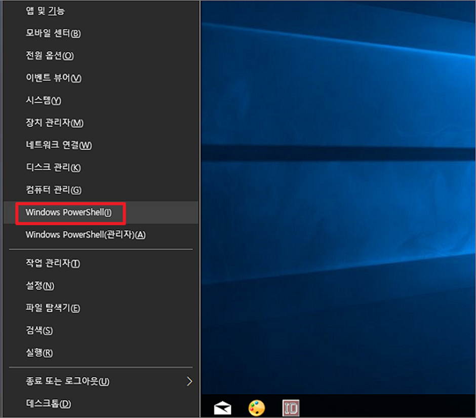 ▼ 두 번째 방법은 윈도우 파워셀(Windows PowerShell) 을 이용하는 것입니다. 윈도우키 + X 를 눌러 보세요. 빠른 실행 메뉴에 파워셀 실행 메뉴가 나타납니다. 굳이 관리자 파워셀을 실행하지 않아도 됩니다.
