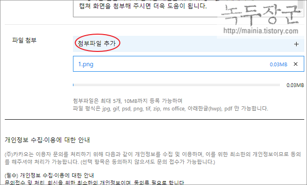 ▼ 마지막에는 증상을 설명할 수 있는 파일을 첨부합니다. 반드시 발생한 증상을 관리자가 최대한 빠르고 정확하게 확인할 수 있도록 캡처해서 이미지 파일로 첨부합니다.