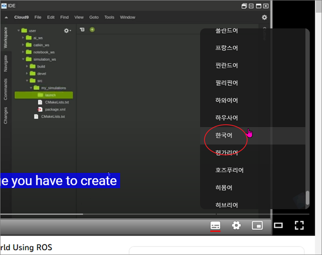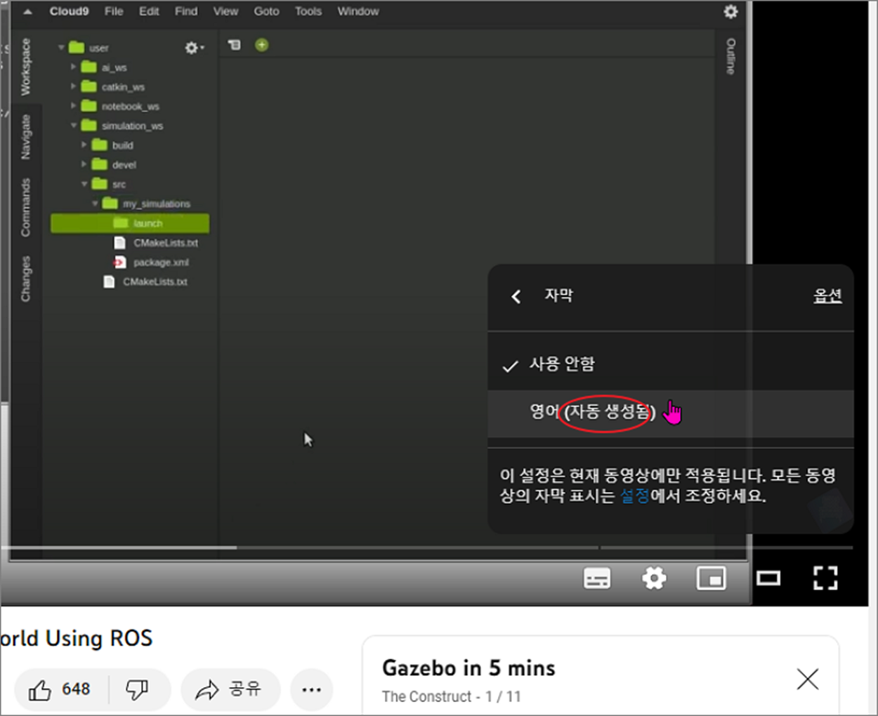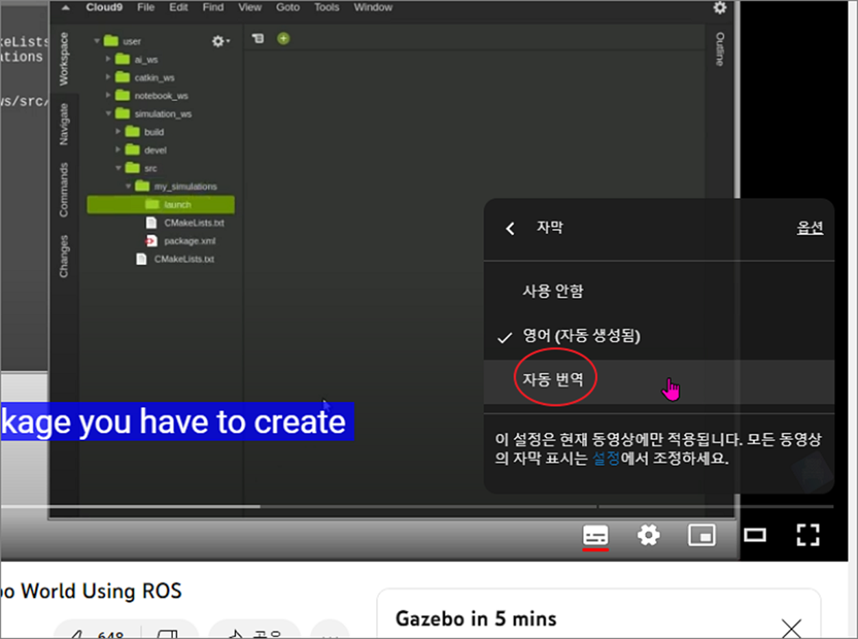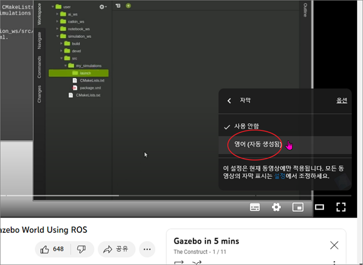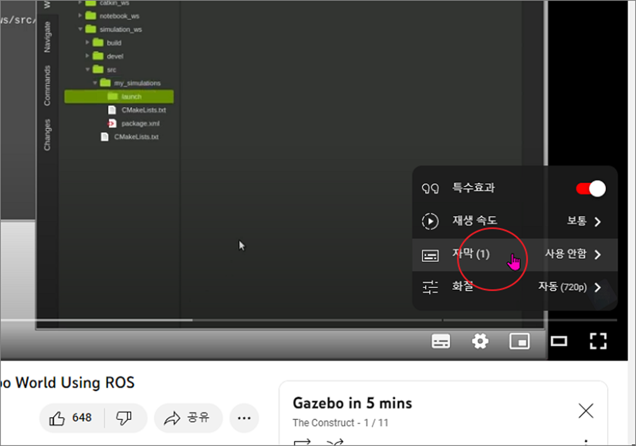 ▼ 영어 동영상인 경우 영어 자막 추가 메뉴가 화면에 나타납니다. 메뉴에 보시면 한국어는 보이지 않습니다.