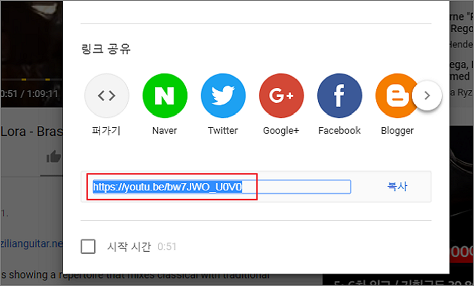 ▼ 그림처럼 동영상 주소를 다른 사람과 링크하고 싶은데 너무 깁니다. 물론 유튜브 공유 주소는 이보다 짧습니다.
