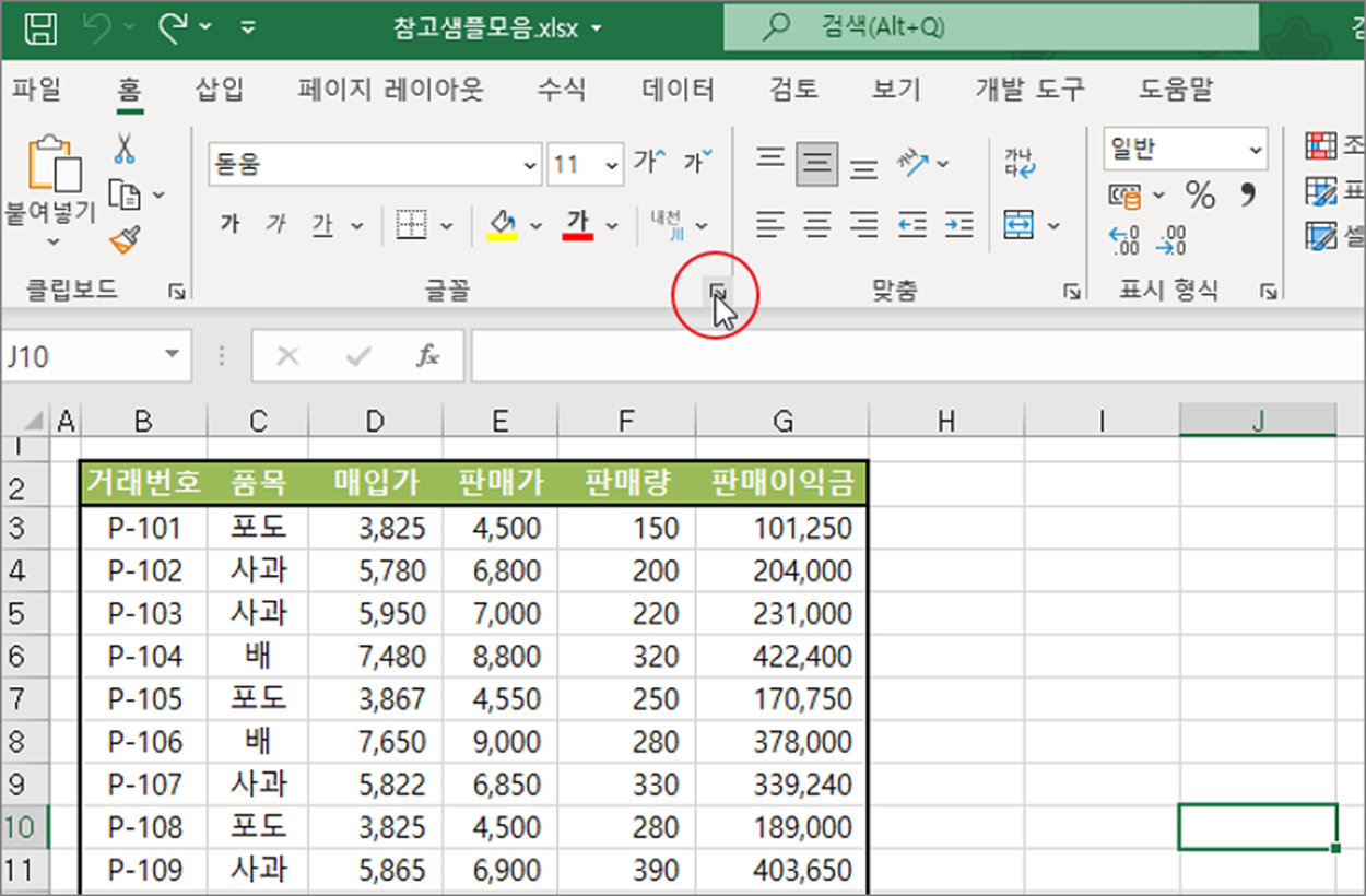 ▼ 다음은 글꼴에서 취소선을 찾아서 적용하는 방법입니다. 서식을 지정할 셀을 선택하고 오른쪽 하단에 있는 홈 탭 > 글꼴 그룹 > 글꼴 설정 화살표를 클릭합니다.
