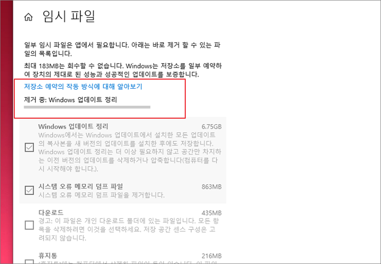 | ◎ 3. 윈도우10 의 자동 저장소 관리 기능 설정하기 |