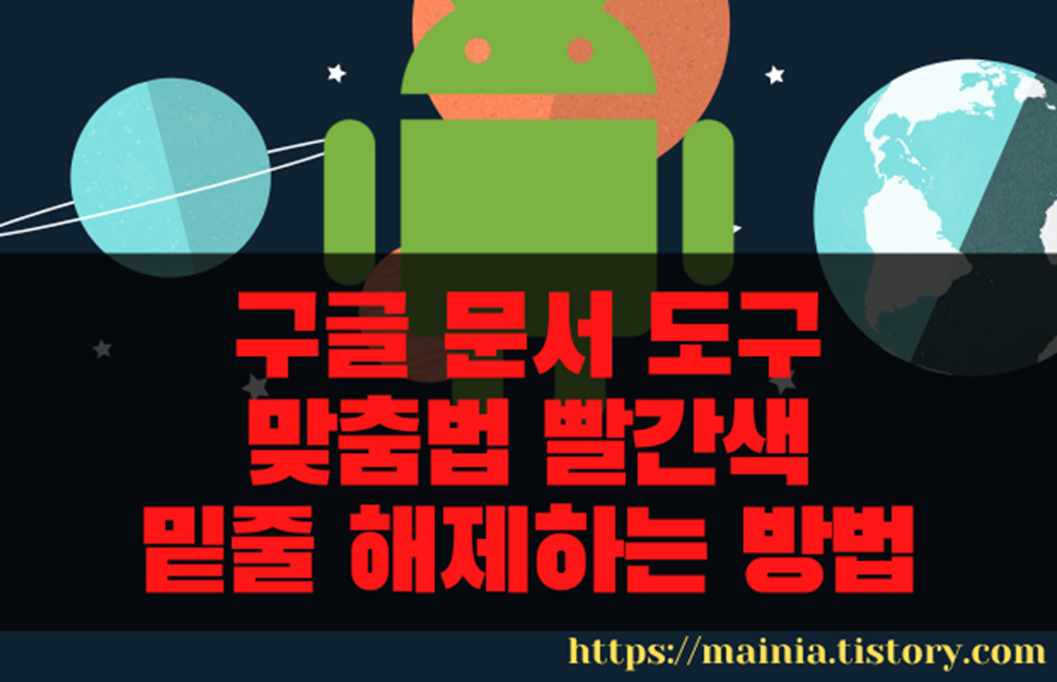 구글 문서 도구에서는 내용을 입력하는 동안 맞춤법을 검사하고 잘못된 내용에 대해서 사용자가 수정할 수 있도록 단어 아래에 빨간 줄 표시를 합니다. 빨간 줄이 없애는 방법은 세 가지입니다. 단어를 수정해서 빨간 줄을 없애거나 아예 표시하지 않도록 옵션을 수정하는 것입니다.