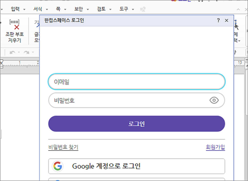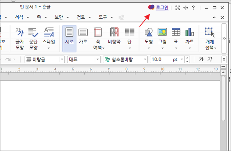 ▼ 두 번째는 문서를 시작하고 오른쪽 상단에 있는 로그인 버튼을 통해서 접속할 수 있습니다.