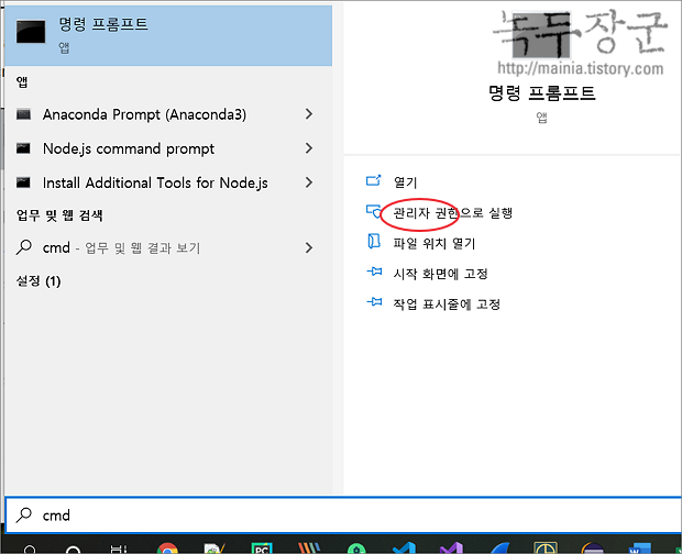 ▼ 다음은 명령 프롬프트를 이용해서 종료하는 방법입니다. 작업관리자에서 했던 방식과 동일합니다. 단지 명령어를 이용해서 프로세스를 종료한다는 것이 차이입니다. 검색창에서 명령 프롬프트를 찾아 관리자 권한으로 실행합니다.