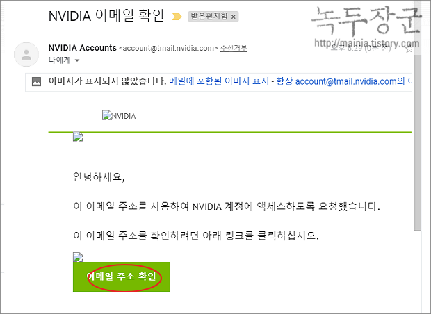 ▼ 검증 이메일을 열어서 본문에 이메일 주소 확인 버튼을 클릭합니다.