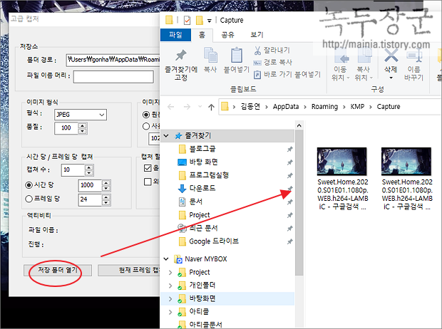 ▼ 현재 프레임 캡처 이미지를 저장했던 폴더에 연속 촬영한 이미지를 확인할 수 있습니다.