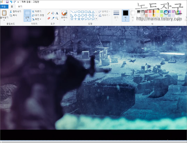 ▼ 그림판에 Ctrl + V 를 눌러 클립 보드에 저장된 캡처 이미지를 붙여 넣기 해 보세요. 영상을 보다가 순간 캡처를 원할 때 쓸 만한 기능입니다.