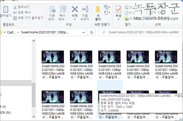 ▼ 사용자가 정한 4행 4열로 영상 끝날 때까지 16장을 캡처해서 하나의 이미지로 배치해서 만든 이미지입니다.