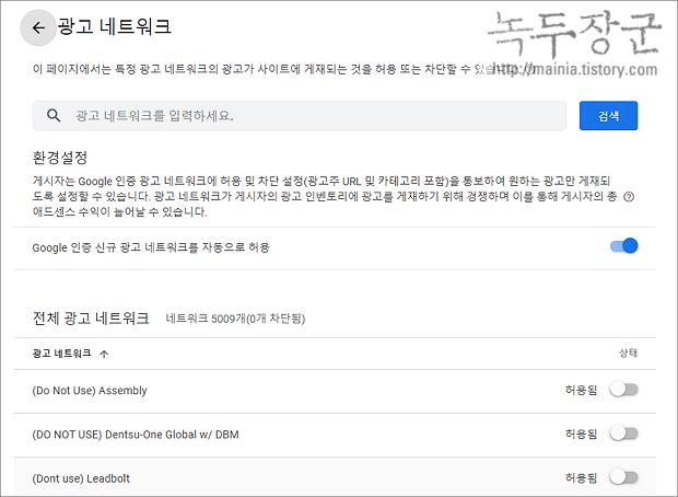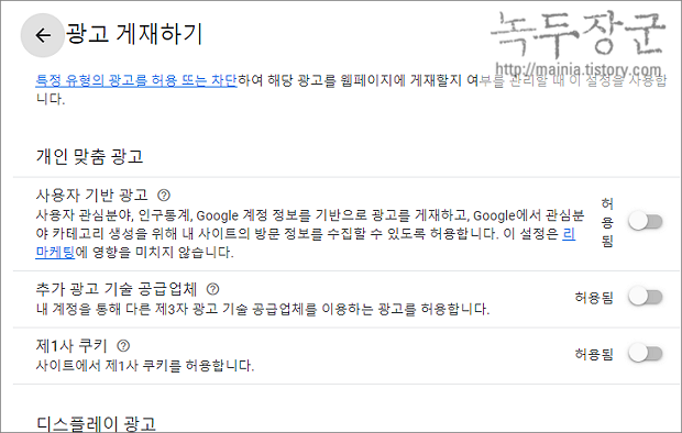 | ◎ 광고 게재하기 종류로 차단 및 허용하기 |