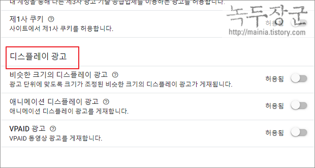▼ 두 번째는 광고가 디스플레이 되는 형태들의 허용 유무를 통해서 차단을 관리하는 옵션입니다.
