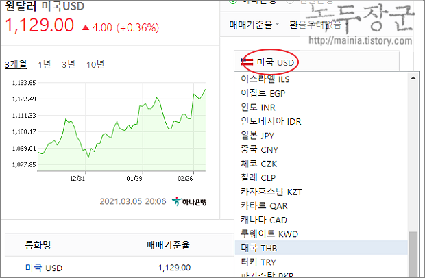 ▼ 은행을 선택하고 교환할 나라의 통화를 선택합니다.