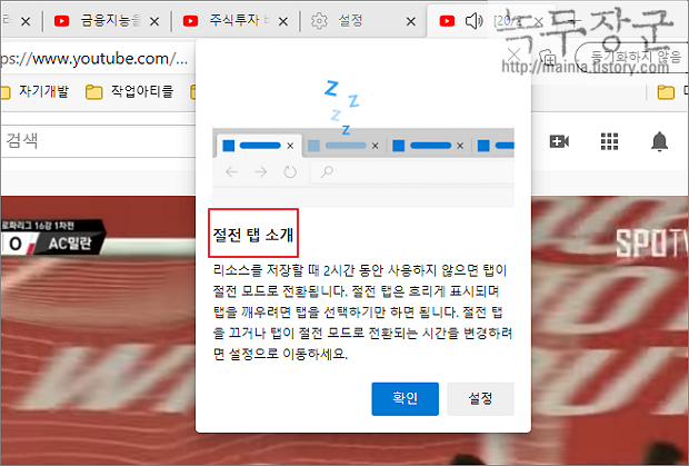 크롬 탭 절전 모드는 아래 포스팅을 참고하세요.