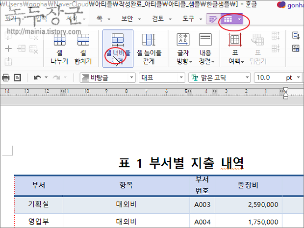 한글에서 표를 다룰 때 열과 행의 넓이를 일일이 마우스로 조절해서 동일한 크기로 맞출 수는 없습니다. 한글에서는 정확하게 일정한 크기로 행과 열의 너비를 조절하는 방법을 다양하게 제공합니다. 표 속성을 이용하거나 리본 메뉴를 클릭해서 한 번에 크기를 일정하게 맞출 수 있습니다. 오늘은 그 방법에 대해 자세히 알아보겠습니다.