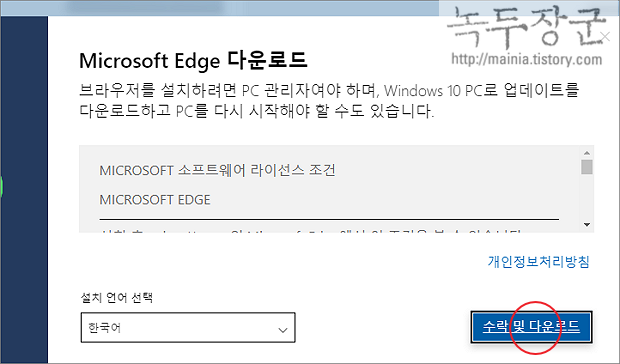 ▼ 문제 해결을 위해 엣지를 다시 설치하는 것도 방법입니다. 이전 엣지를 제거할 필요는 없습니다. 설치가 제대로 완료되면 이전 기록과 쿠키 및 설정은 자동으로 복원됩니다. 아래 링크를 클릭해서 마이크로소프트 엣지 홈으로 접속합니다.
