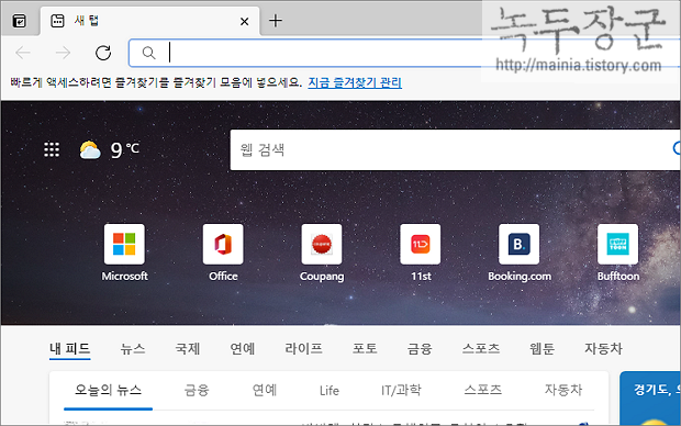 ▼ 정상적으로 설치한 결과 처음 엣지를 실행했을 때와 같은 웹 화면이 뜨네요.