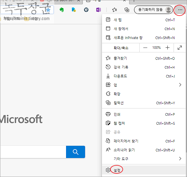 ▼ 우선 설정화면으로 이동하겠습니다. 오른쪽 상단에 더보기 > 설정 메뉴를 선택합니다.