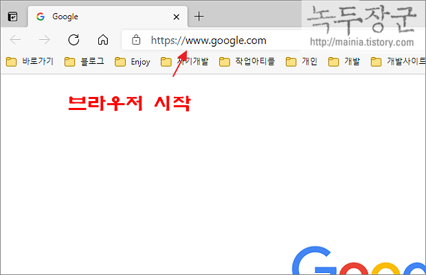 ▼ 설정을 변경했다면 브라우저를 닫고 다시 시작합니다. 그림처럼 브라우저 시작과 함께 새 탭에 지정한 사이트가 열렸습니다.
