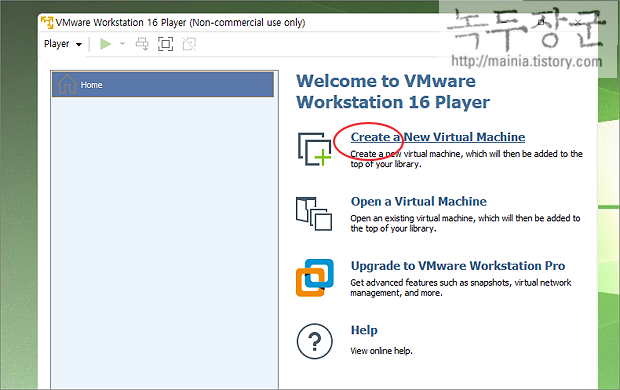 ▼ VMWare 을 실행하고 윈도우10 을 설치할 가상 공간을 만들어야 합니다. Create a New Virtual Machine 메뉴를 클릭합니다.