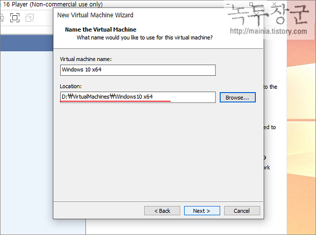 ▼ 두 번째 화면에서는 가상 머신 파일이 위치할 곳을 지정해야 합니다. 용량이 크기 때문에 C 드라이버는 피하는 것이 좋습니다.